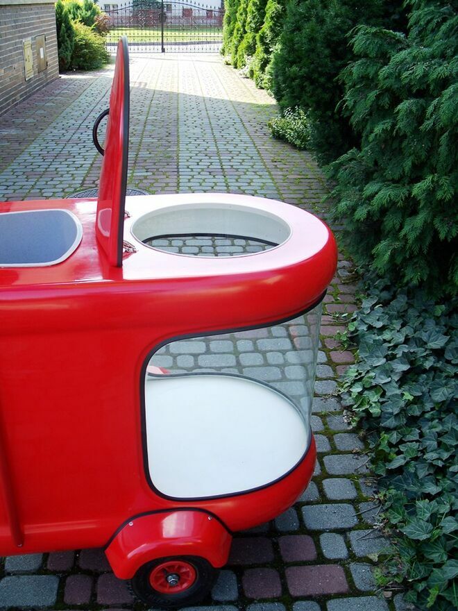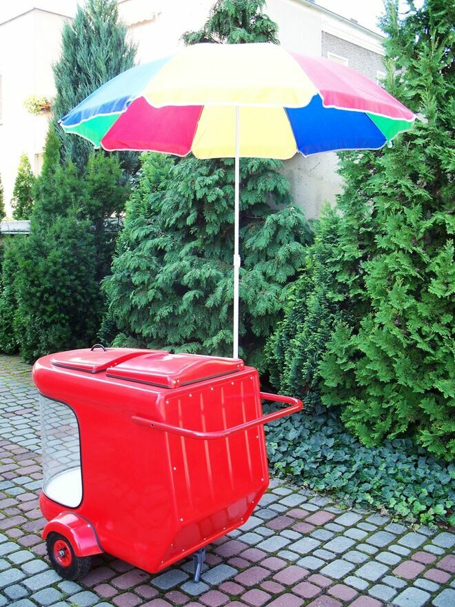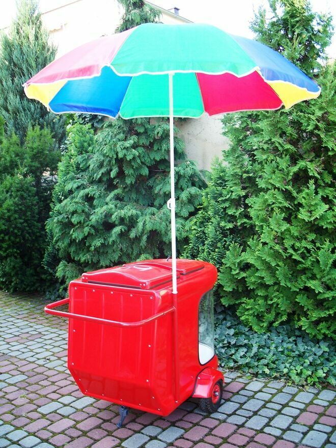 Jest to autorski produkt na rynku - zaprojektowany i wykonany przez moją firmę.Doskonale nadają się do handlu obwoźnego na ulicach. Wózki są lekkie, posiadają wytrzymałe kółka, więc łatwo się z nim poruszać. Bardzo duża mobilność.